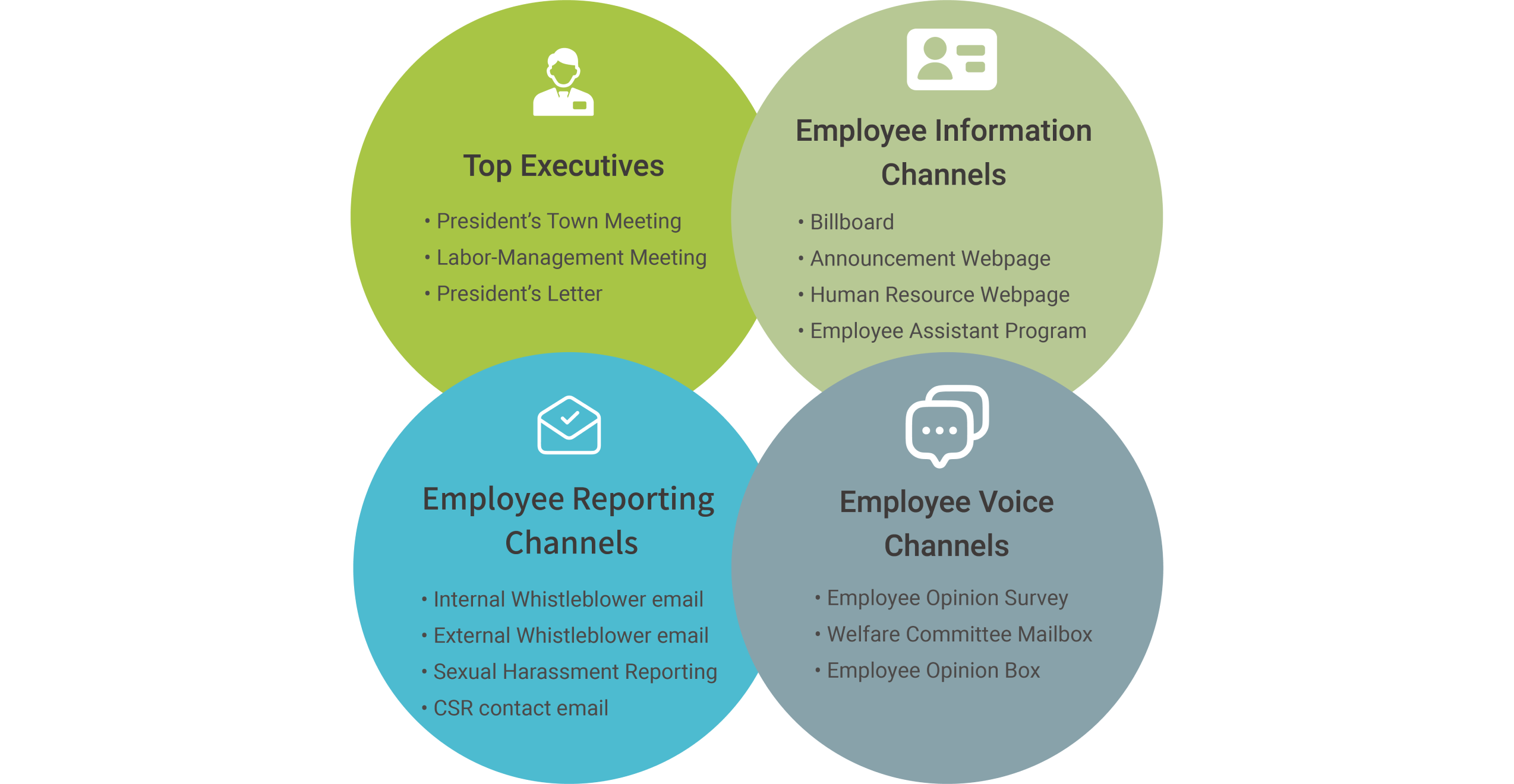 | All employees | Regular labor-management meetings | Employee activity participation rate |